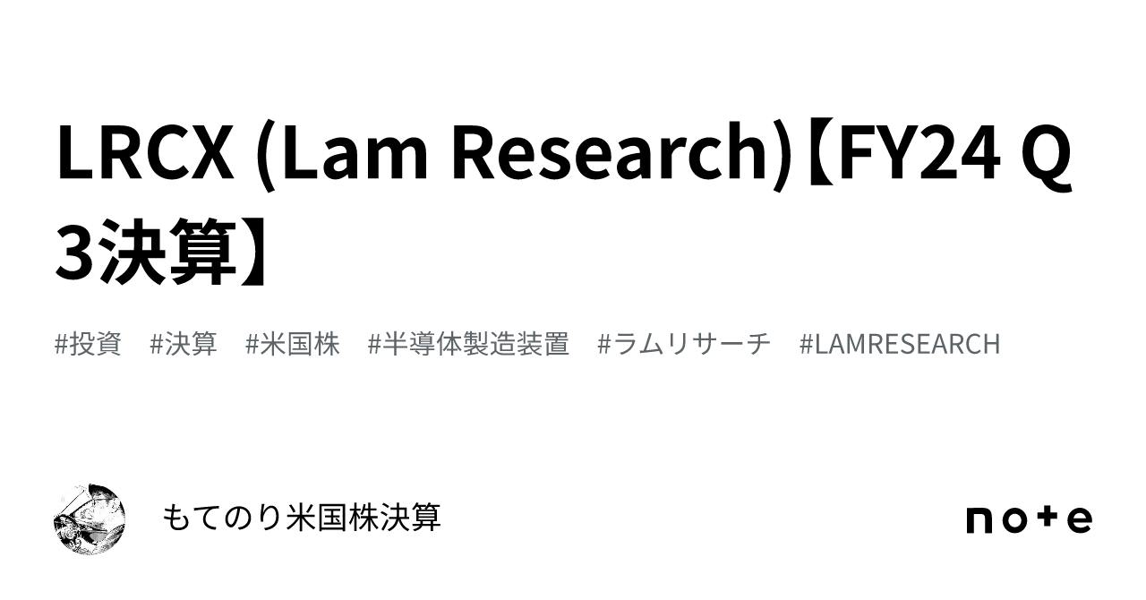 LRCX (Lam Research)【FY24 Q3決算】|もてのり✨米国株決算