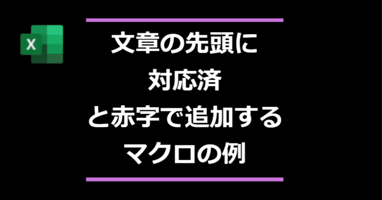 📊 【Excel VBA Tips】 セルの先頭に「対応済」を赤字で追加する方法を解説! 画面のチラつき防止や、エラー処理まで丁寧に説明しています✨ 業務効率化に役立つコードです💻note.com/makotoym/n/n1f…