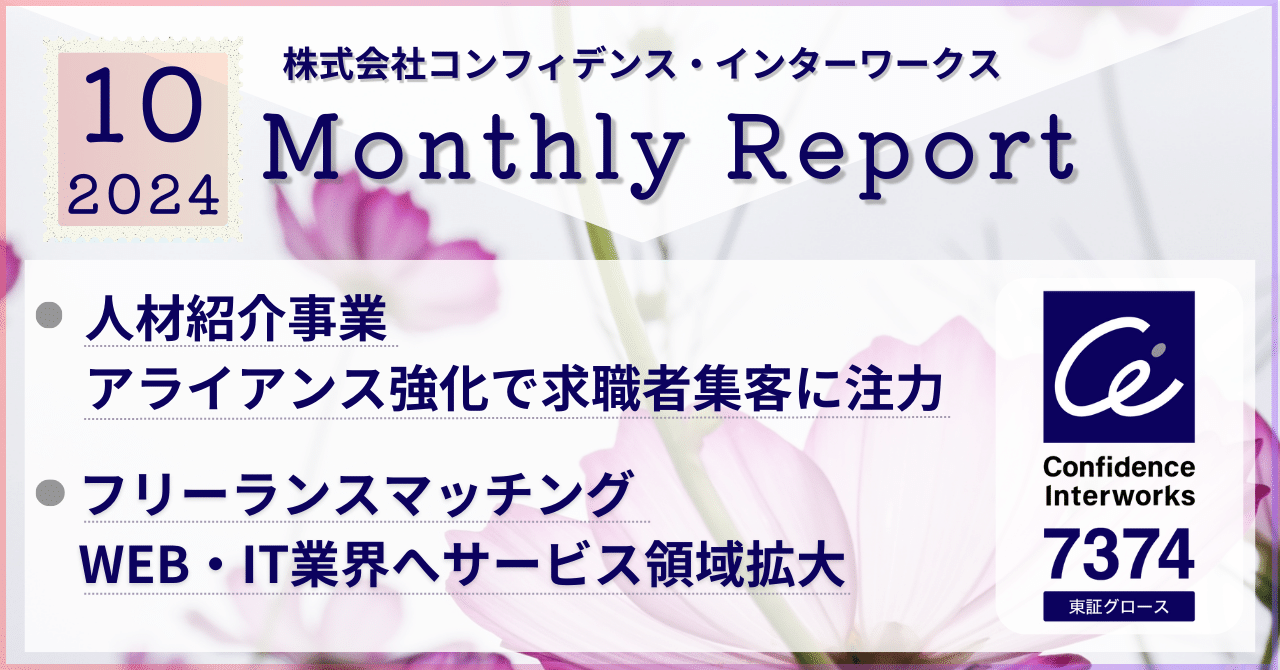 2024.10 Monthly Report|株式会社コンフィデンス・インターワークス_公式IR note