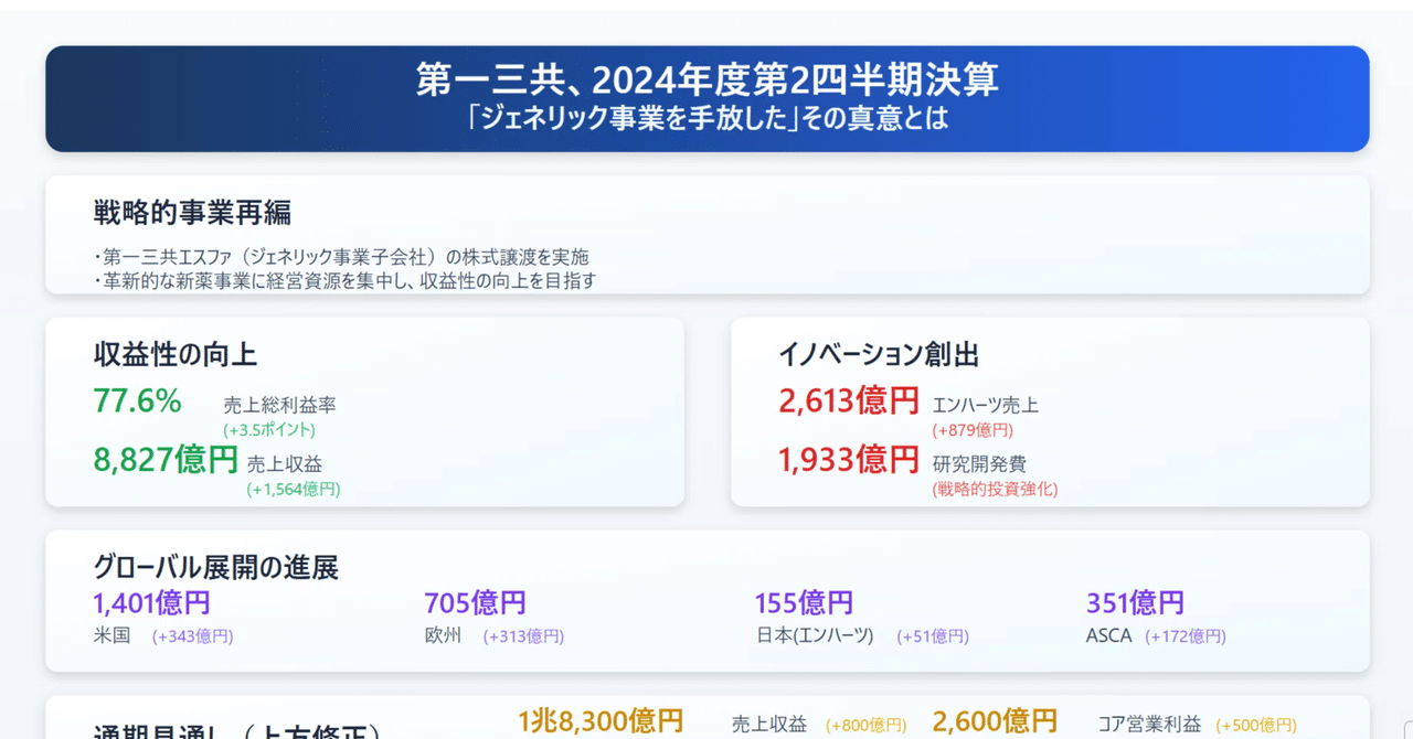 第一三共、2024年度第2四半期決算:「ジェネリック事業を手放した」その真意とは|きらくの個別株観測所