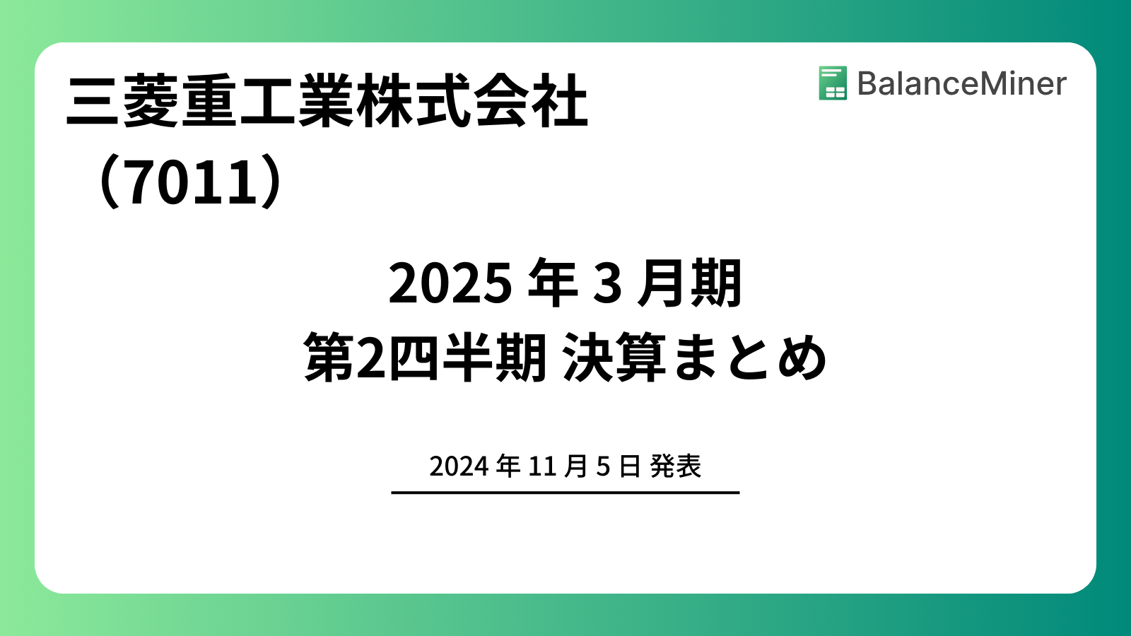 【📈決算まとめ】 三菱重工業 2025年第2四半期決算まとめ balance.plhaton.com/report/%E4%B8%…