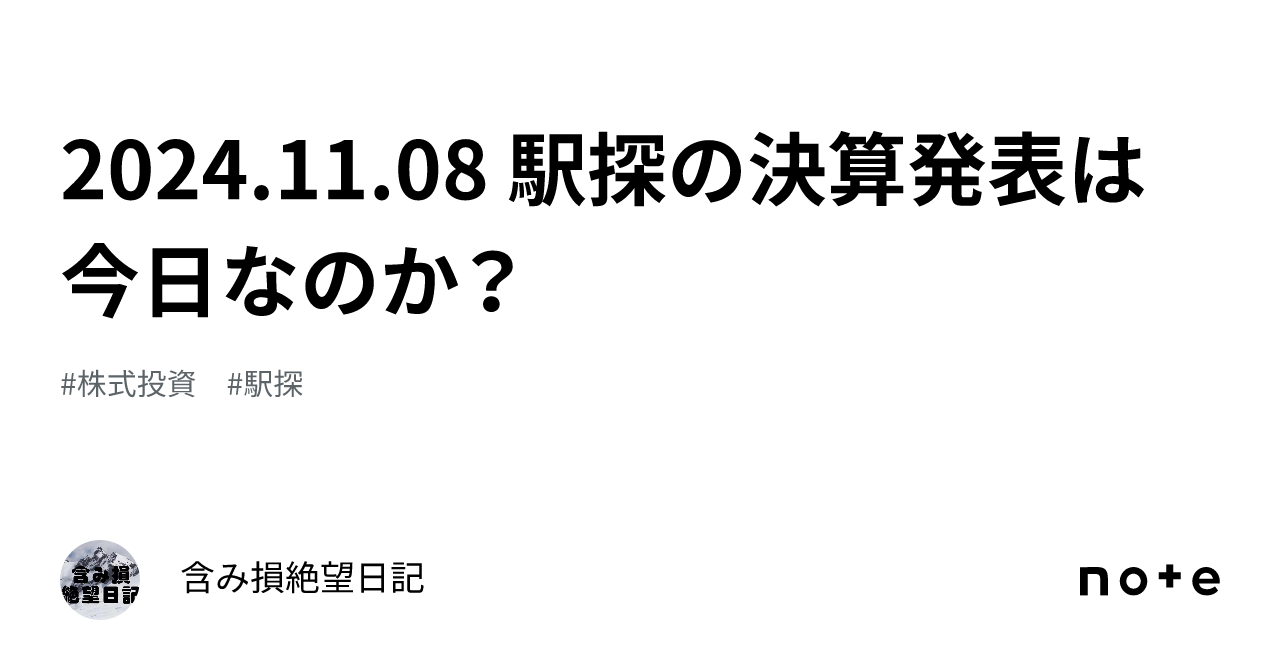 2024.11.08 駅探の決算発表は今日なのか?|含み損絶望日記
