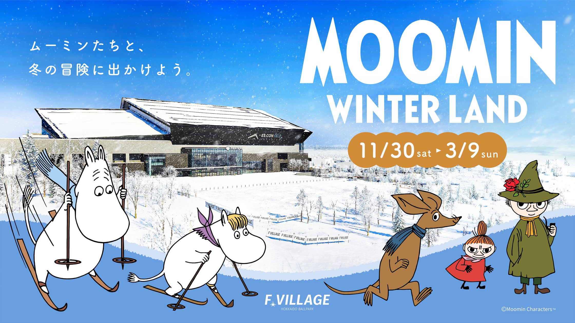 ムーミンが冬の北海道ボールパークFビレッジと初コラボレーション。「MOOMIN WINTER LAND」開催決定!イルミネーション、フォトスポット、限定グッズやフード、ウィンタースポーツ体験が登場。