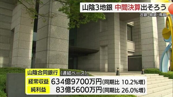山陰3地銀 9月中間決算出揃う 山陰合銀と島根銀行は増収増益 鳥取銀行は増収減益|FNNプライムオンライン