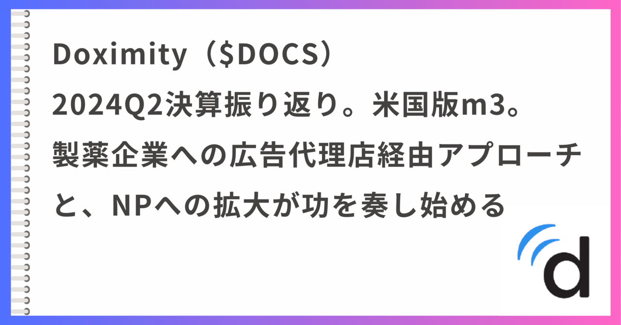 【Doximity】2024Q2決算振り返り。製薬企業への広告代理店経由アプローチと、NPへの拡大が功を奏し始める 👇note note.com/kazu098/n/n586…