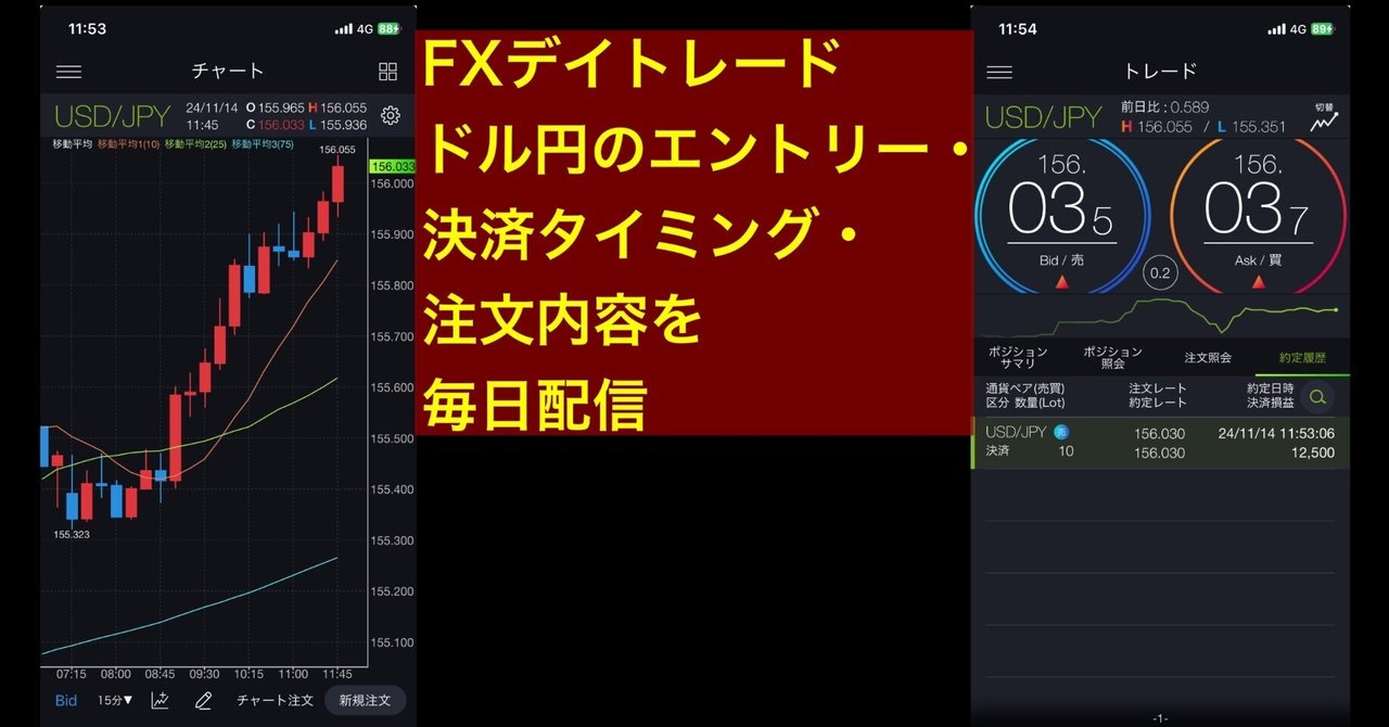 【FX】デイトレード:ドル円のエントリーと決済タイミングを毎日配信!2024.11.13〜11.21まで更新します|captain009@売買技術派FXトレーダー|webライター