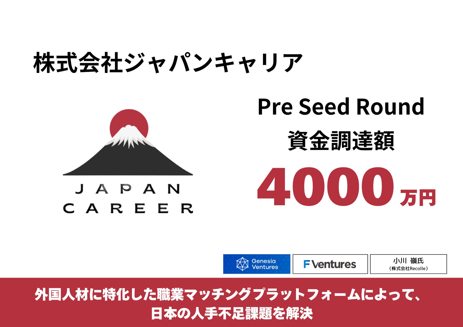 外国籍の人材に特化した職業マッチングプラットフォームを運営する株式会社ジャパンキャリア、ジェネシア・ベンチャーズ、F Ventures、小川 嶺氏からプレシードラウンドでの資金調達を実施