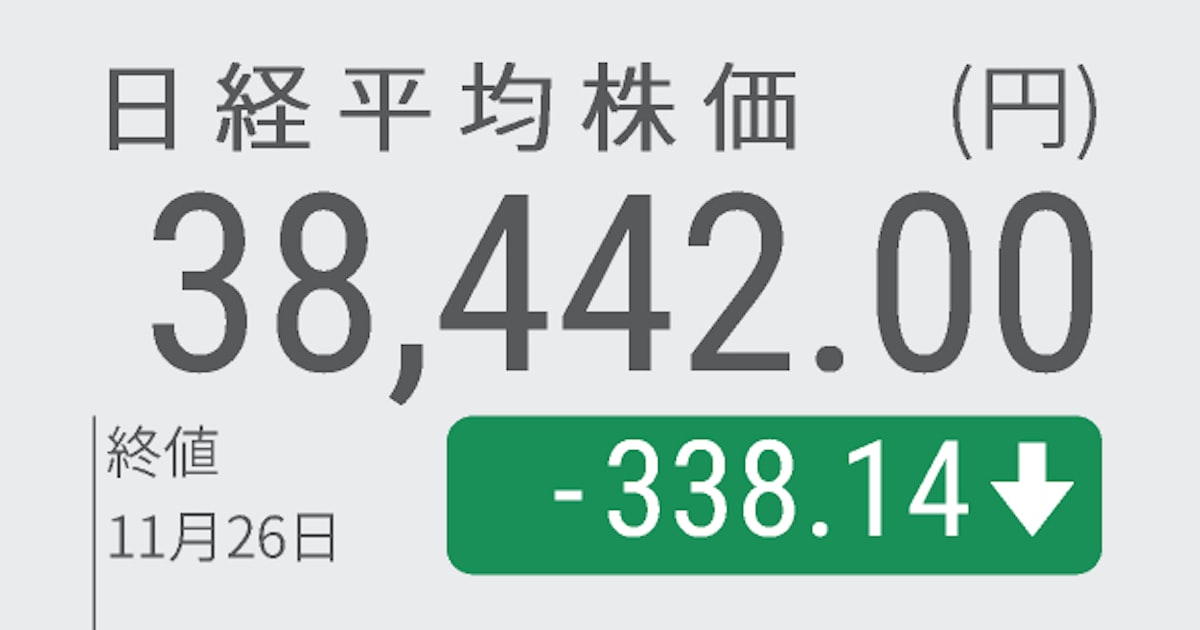 日経平均株価338円安 「トランプ劇場」再開に市場動揺日本経済新聞 トランプ米次期大統領が25日、自身のSNSに中国からの全輸入品に10%の追加関税を課すと投稿し、リスク回避目的の売りが広がった。 nikkei.com/article/DGXZQO…