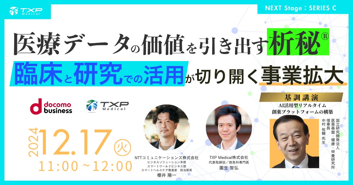 【シリーズC資金調達イベント】NTTコミュニケーションズ共催Webinar「医療データの価値を引き出す析秘®—臨床と研究での活用が切り開く事業拡大」12月17日開催