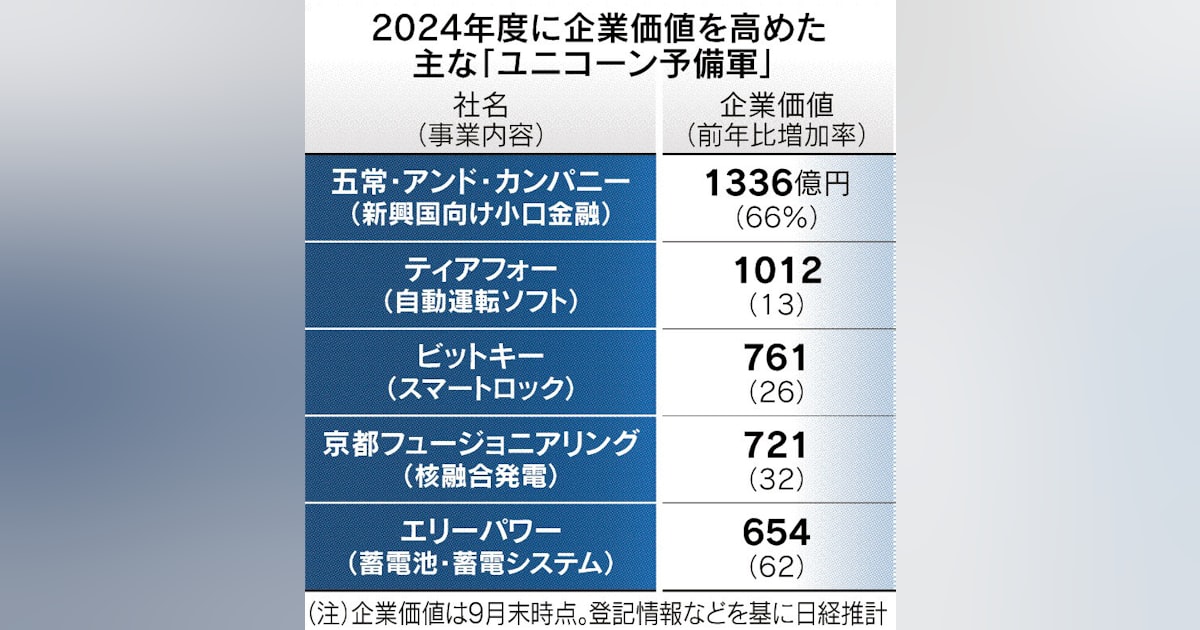 ユニコーン予備軍14社 五常やティアフォー躍進 海外マネー吸引カギ - 日本経済新聞