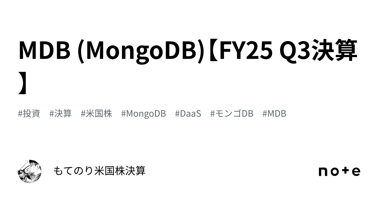 MDB (MongoDB)【FY25 Q3決算】|もてのり✨米国株決算