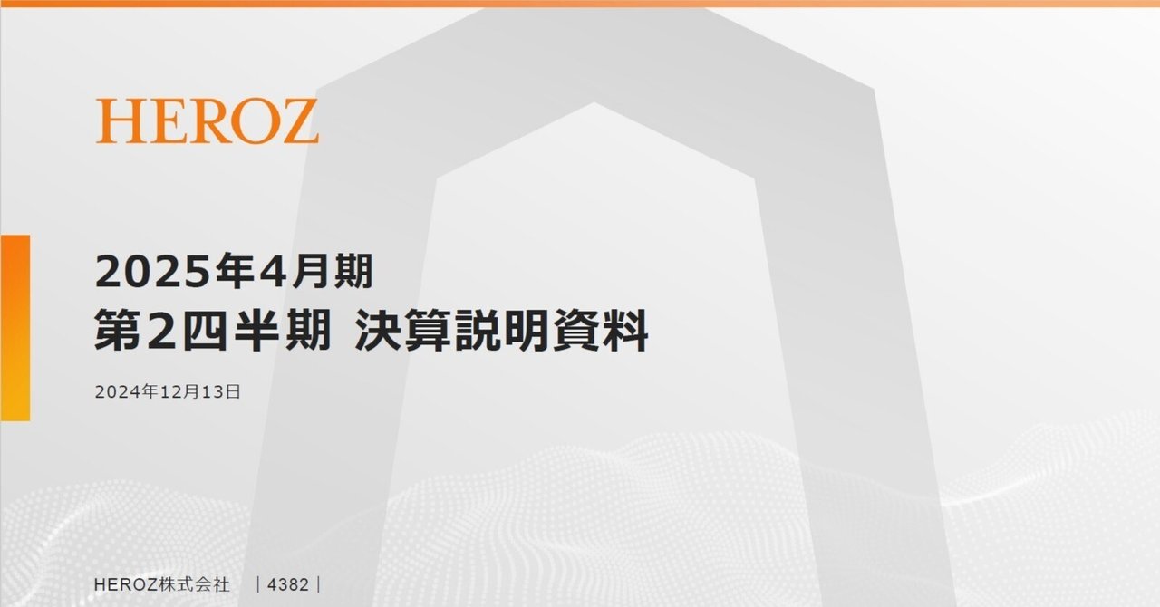 【HEROZ:4382】2025年4月期 第2四半期決算発表に関するご説明|HEROZ株式会社_IR