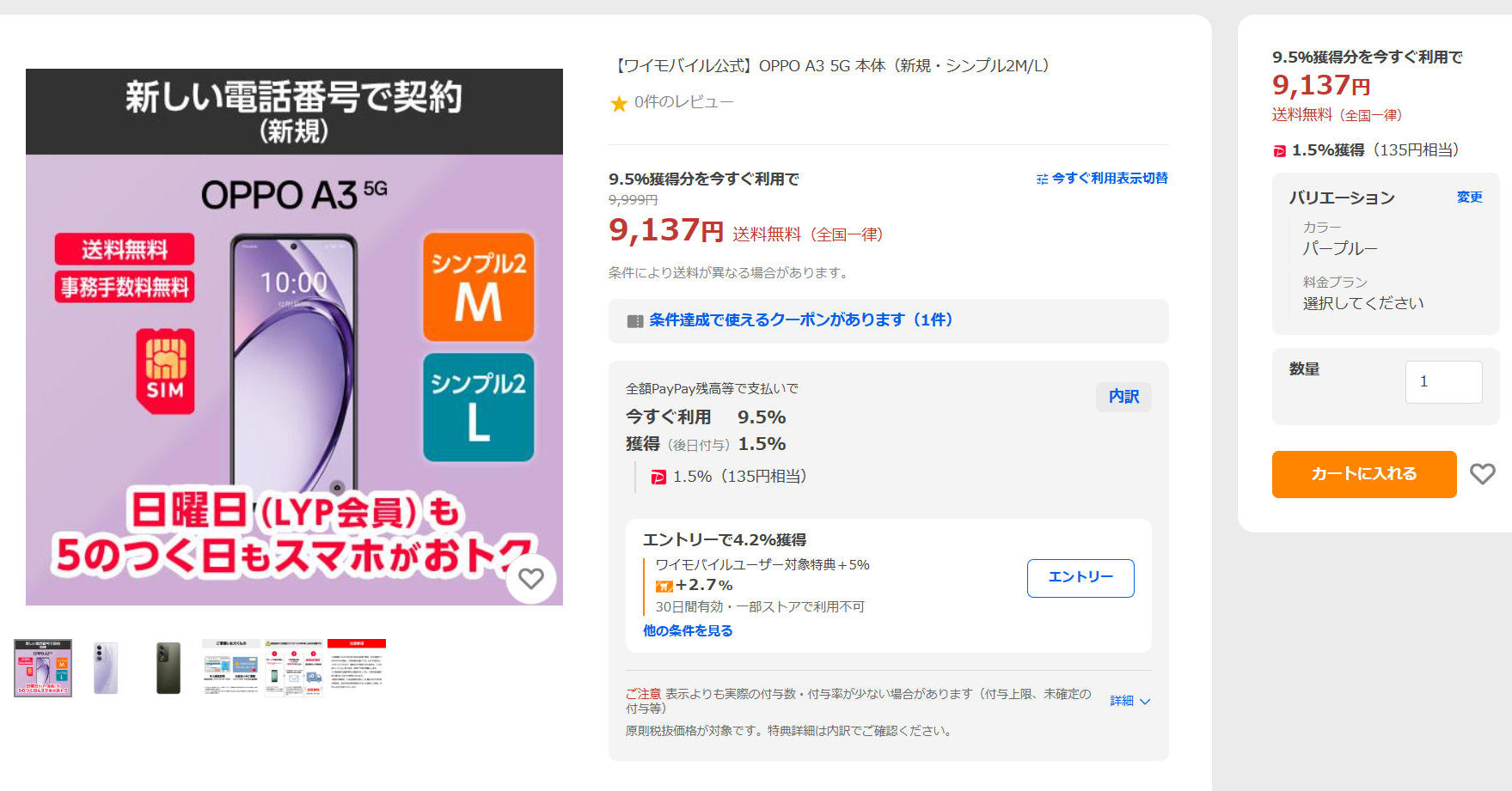 「OPPO A3 5G」がMNPで1円に Y!mobile ヤフーショッピング店で年末年始セール