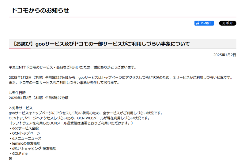 ドコモもDDoS攻撃を受ける gooやOCN、d払いなどに障害発生