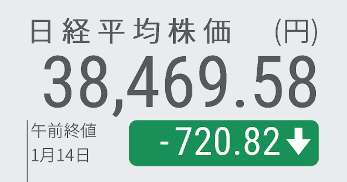 14日の東京株式市場で日経平均株価は4日続落し、前営業日比716円安の3万8474円で終えた。下げ幅は一時850円を超えた。米政権が人工知能向け先端半導体に関する輸出規制の見直し案を発表し、AI関連銘柄の中長期での成長期待に懸念が高まっている。 nikkei.com/article/DGXZQO…