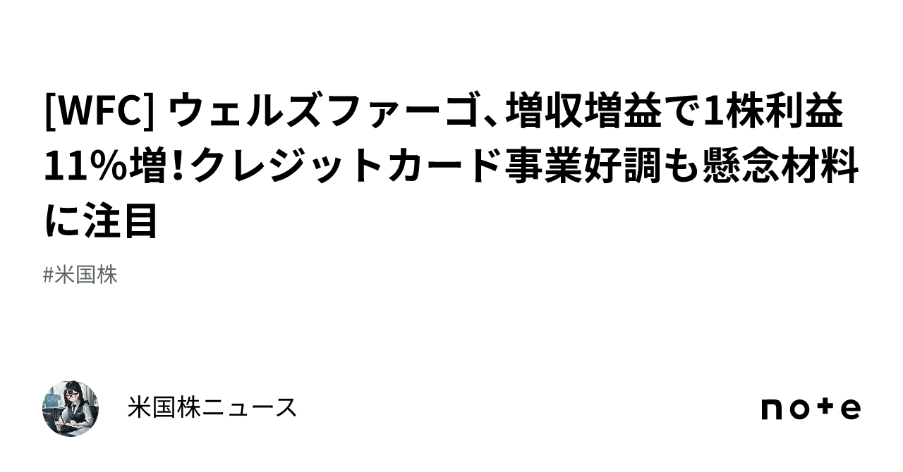[WFC] ウェルズファーゴ、増収増益で1株利益11%増!クレジットカード事業好調も懸念材料に注目|米国株ニュース