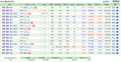 【2025.1.17】前日比-71,690円/日本スキー場開発、三井E&S下落などでPFは7日続落 : おかっちの株式投資奮闘記