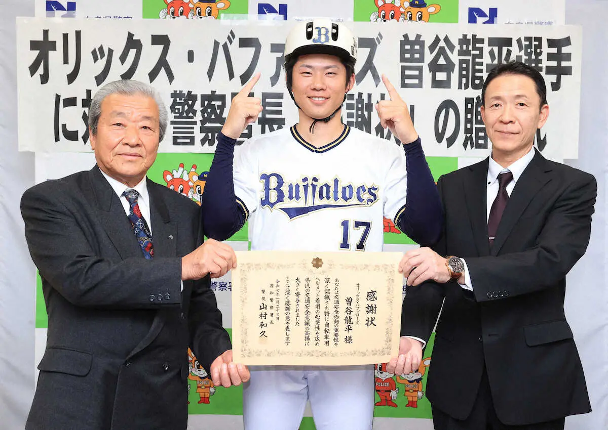 オリックス・曽谷が地元の奈良県西和警察署から感謝状贈呈 ヘルメット啓発で地元の交通死亡事故0件達成 - スポニチ Sponichi Annex 野球