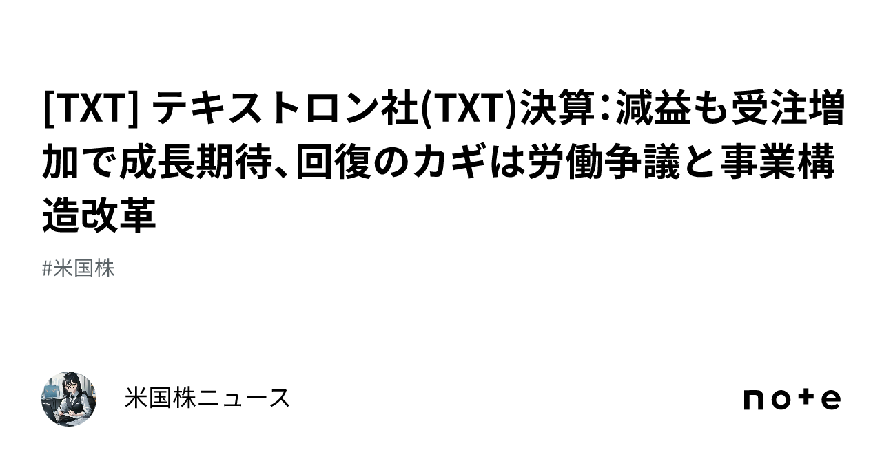 テキストロン社決算減益も受注増加で成長期待、回復のカギは労働争議と事業構造改革 note.com/stocks_info/n/…