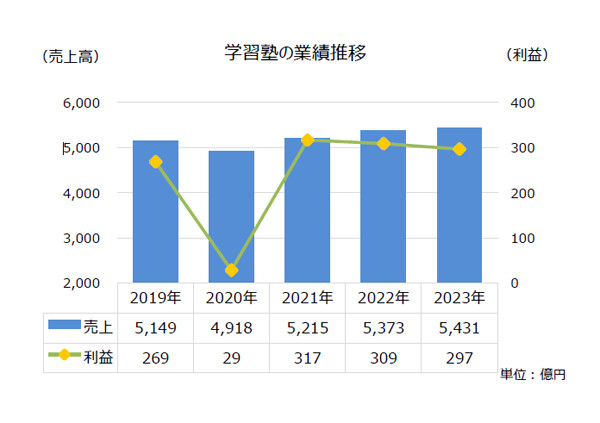 「学習塾」約3割が赤字 - 公文や早稲田アカデミーなど大手5社が全体売上高の約3割占める (マイナビニュース)