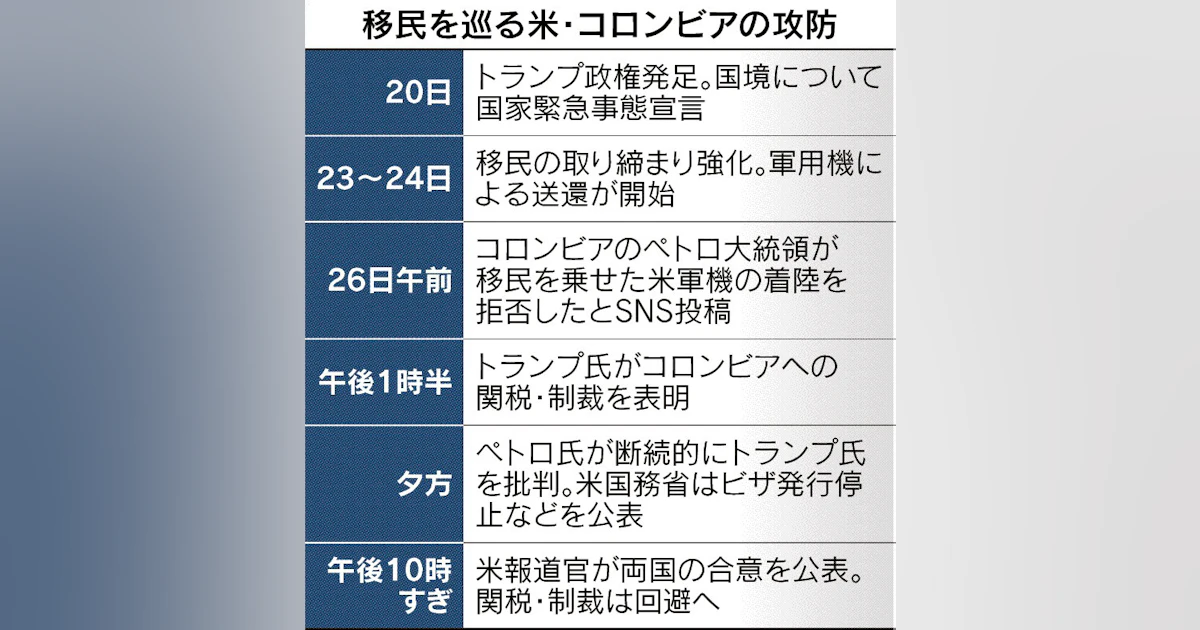 移民送還、関税で圧力 米、コロンビアと合意後撤回 「拒めば25%」要求通す - 日本経済新聞