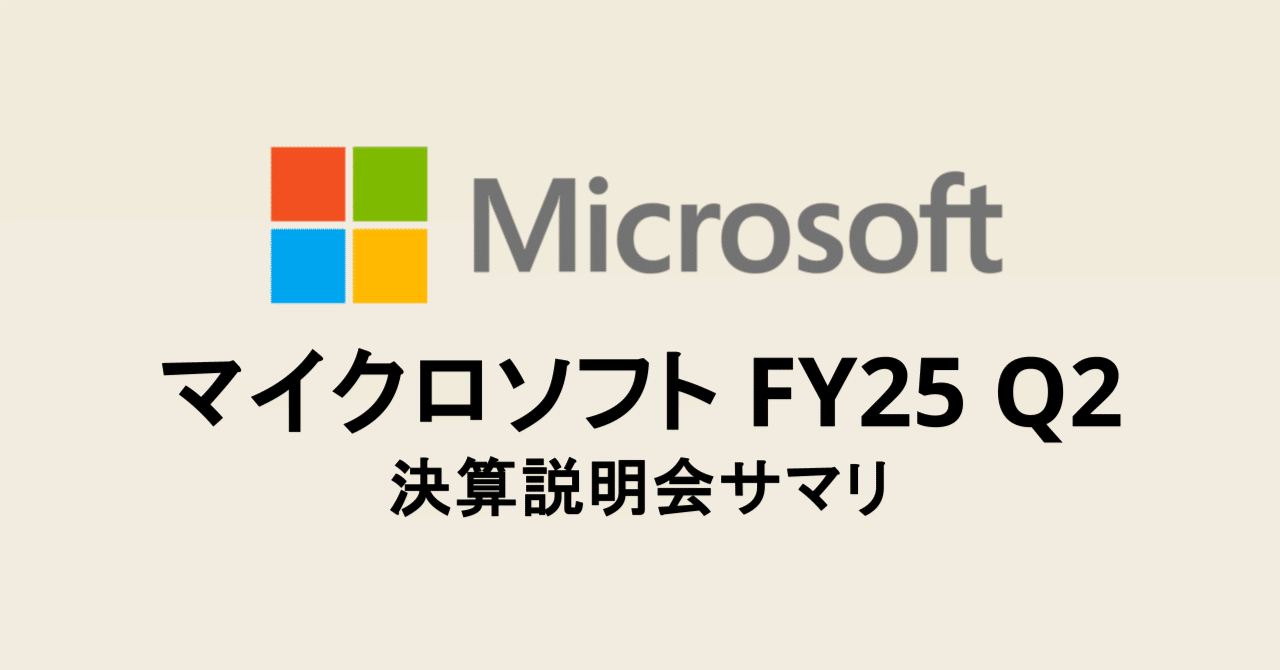 MSFT マイクロソフト FY25 Q2 決算説明会サマリ|Koji 投資家・トレーダー