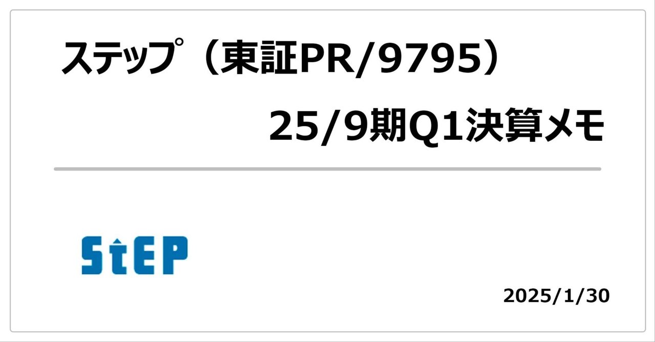 【決算メモ】ステップ(東証PR/9795)_25/9期Q1|まるのん