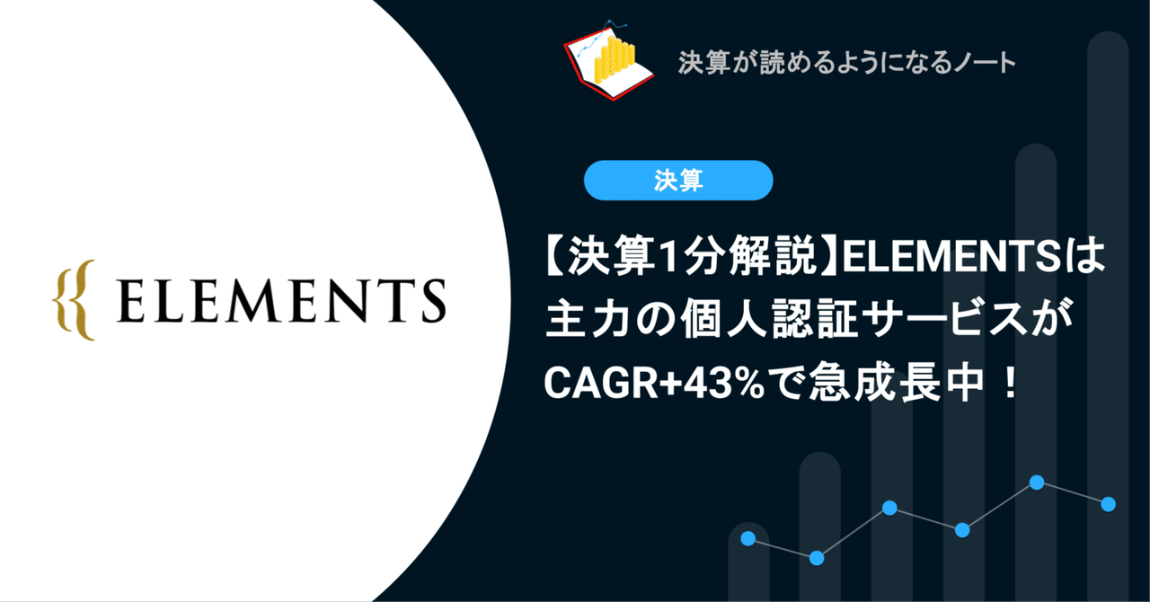 【決算1分解説】ELEMENTSは主力の個人認証サービスがCAGR+43%で急成長中!|決算が読めるようになるノート