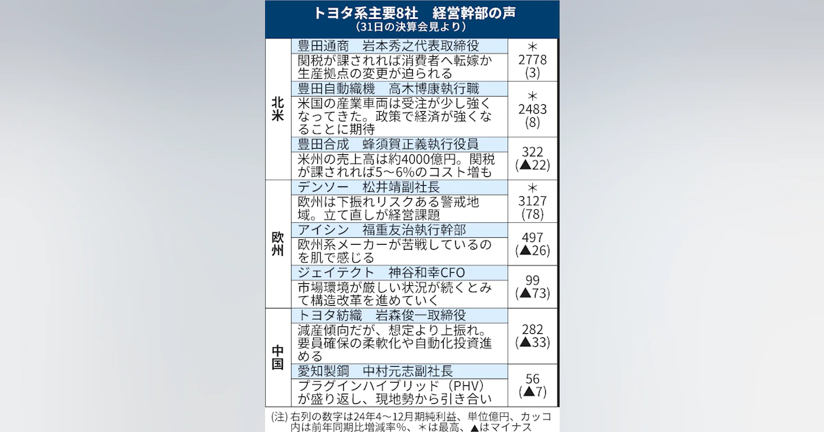 トランプ関税で「米州コスト5〜6%増も」 トヨタ系警戒 - 日本経済新聞