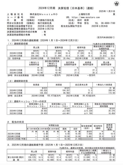 MonotaRO 2024年12月期通期決算 : 官報ブログ