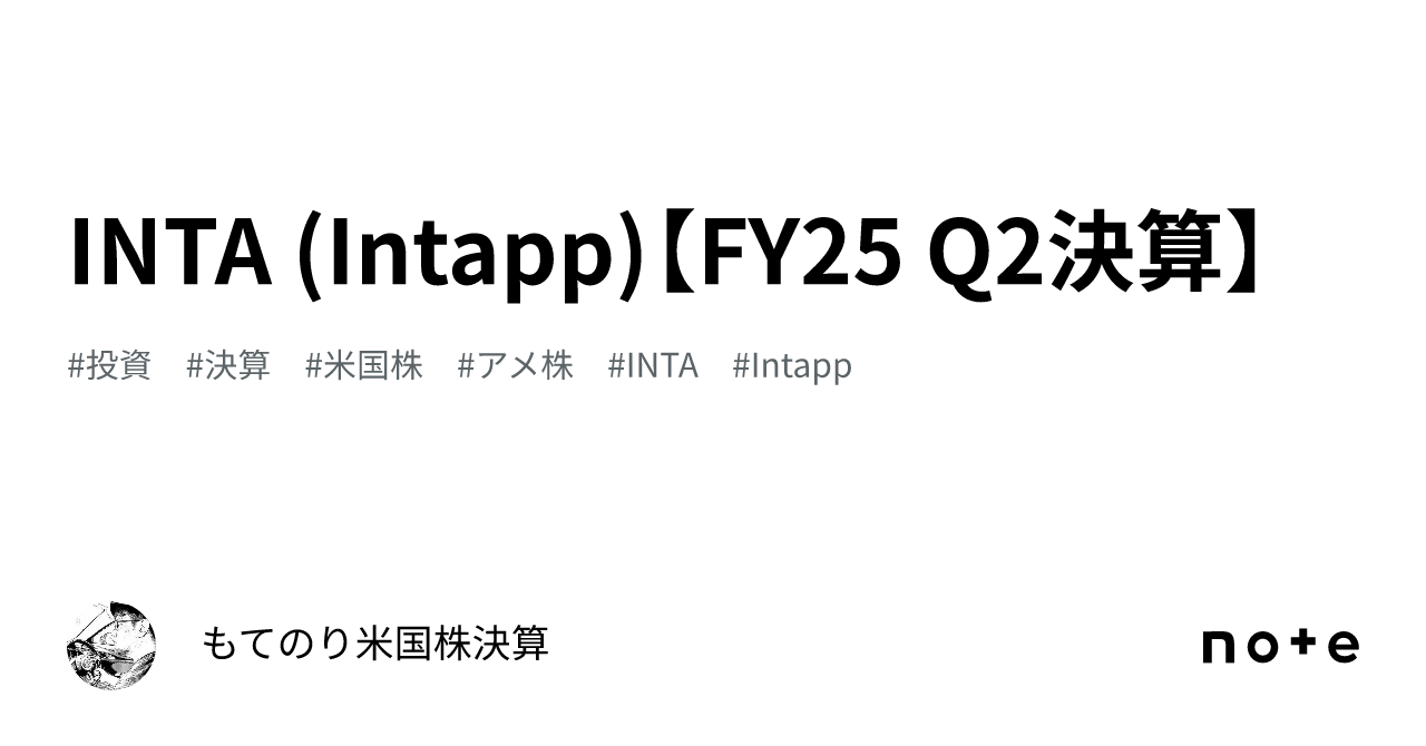 INTA (Intapp)【FY25 Q2決算】|もてのり✨米国株決算