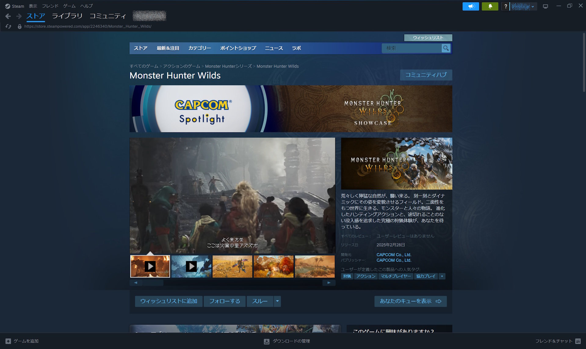カプコンが「モンスターハンターワイルズ ベンチマーク」を公開 Steam Store経由でダウンロード可能