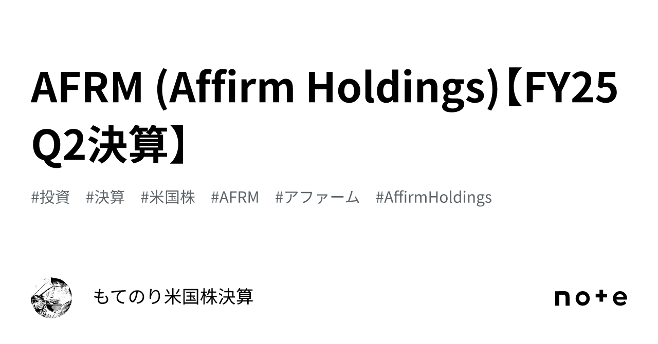 AFRM (Affirm Holdings)【FY25 Q2決算】|もてのり✨米国株決算