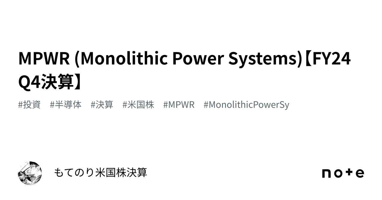 MPWR (Monolithic Power Systems)【FY24 Q4決算】|もてのり✨米国株決算