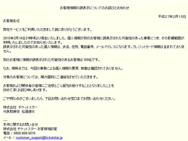 「楽天チケット」で他人の個人情報誤表示 氏名、住所、電話番号、メールアドレスなど