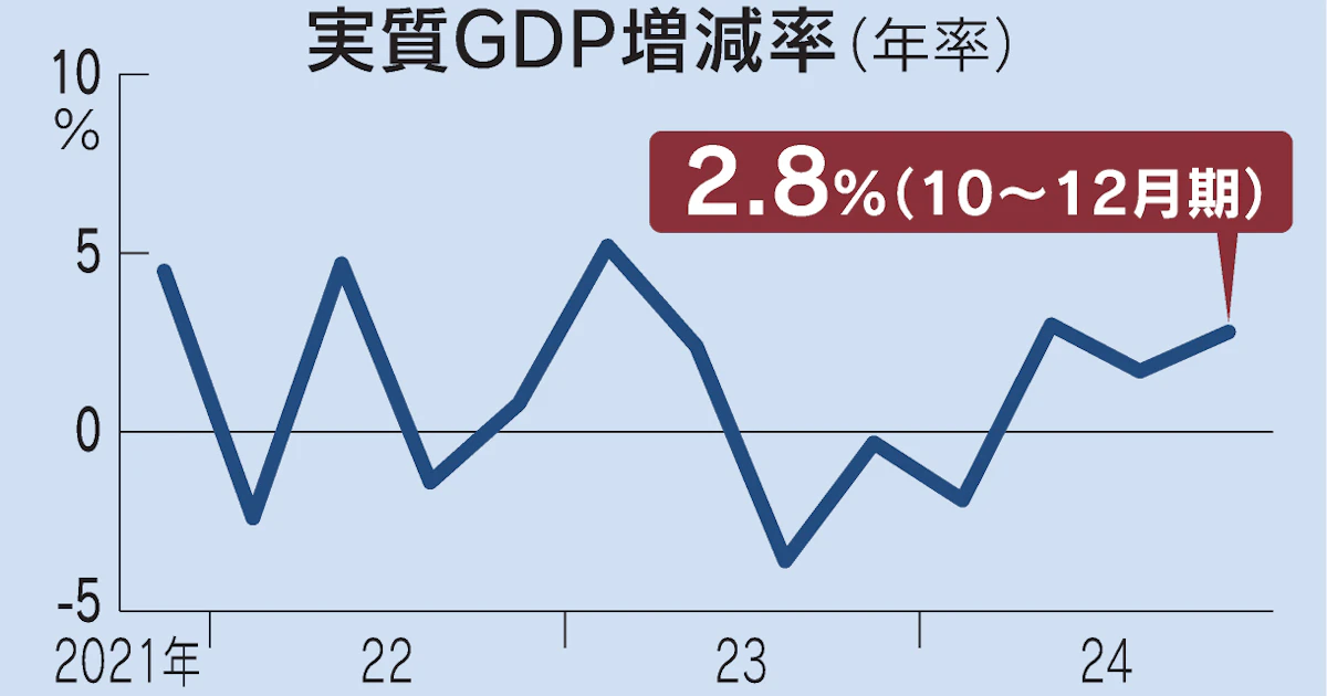 GDP年率2.8%増、24年10〜12月期 通年もプラス成長 - 日本経済新聞