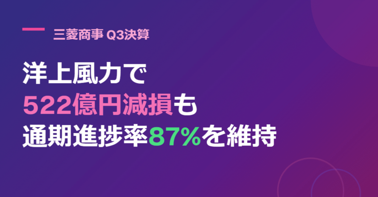 洋上風力で522億円減損も通期進捗率87%を維持――三菱商事Q3決算、AI・データセンター投資はどう動く?次期経営戦略のカギを徹底解説|きらくの個別株観測所/優配成長・応援投資