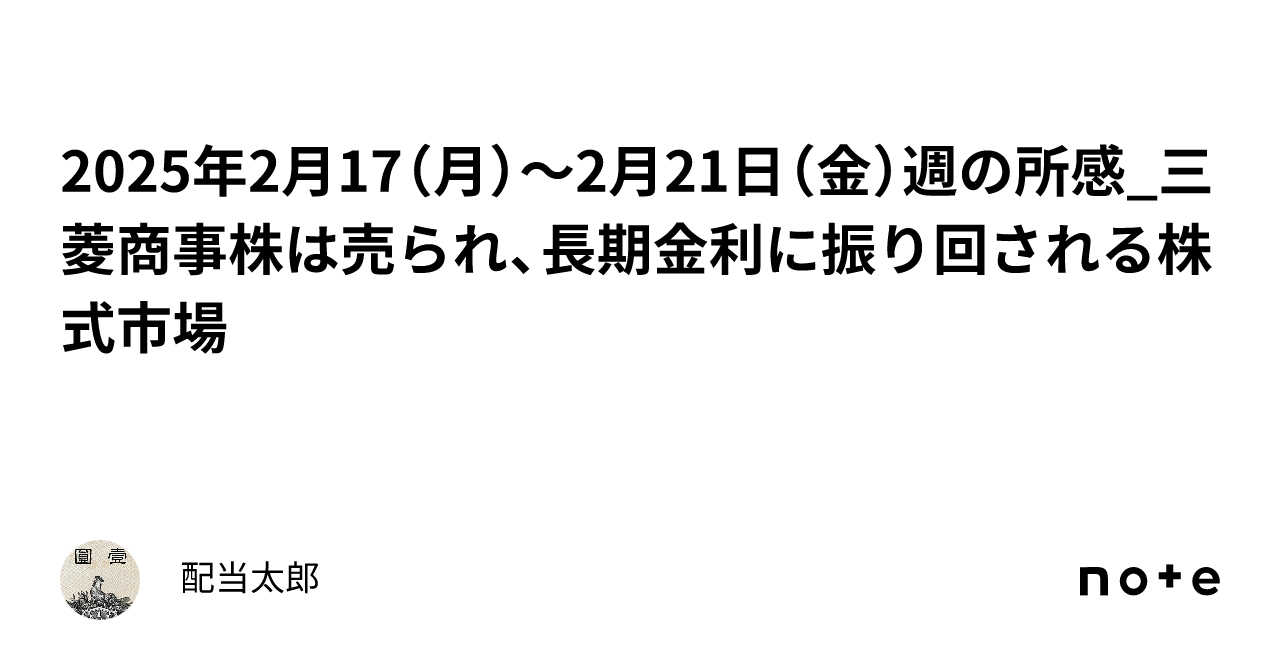 2025年2月17(月)~2月21日(金)週の所感_三菱商事株は売られ、長期金利に振り回される株式市場|配当太郎