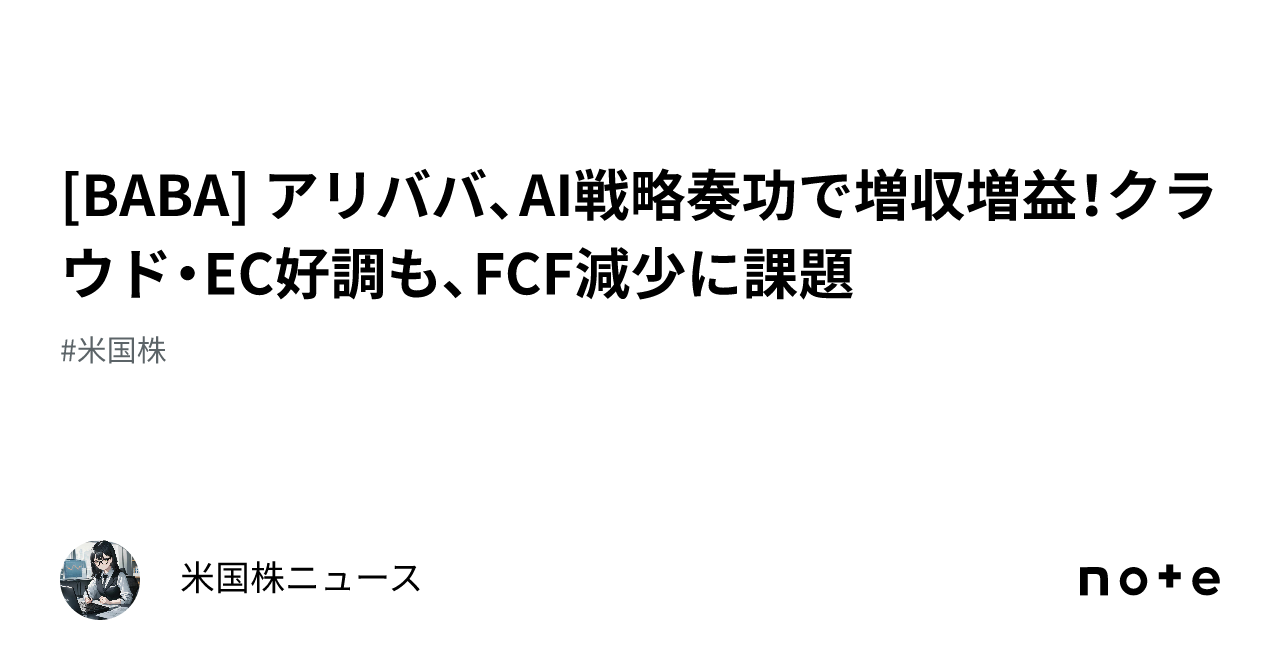 [BABA] アリババ、AI戦略奏功で増収増益!クラウド・EC好調も、FCF減少に課題|米国株ニュース