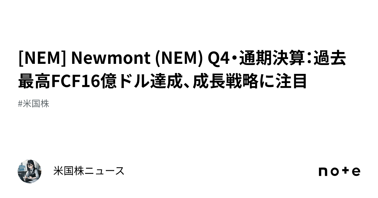 Newmont Q4・通期決算過去最高FCF16億ドル達成、成長戦略に注目 note.com/stocks_info/n/…