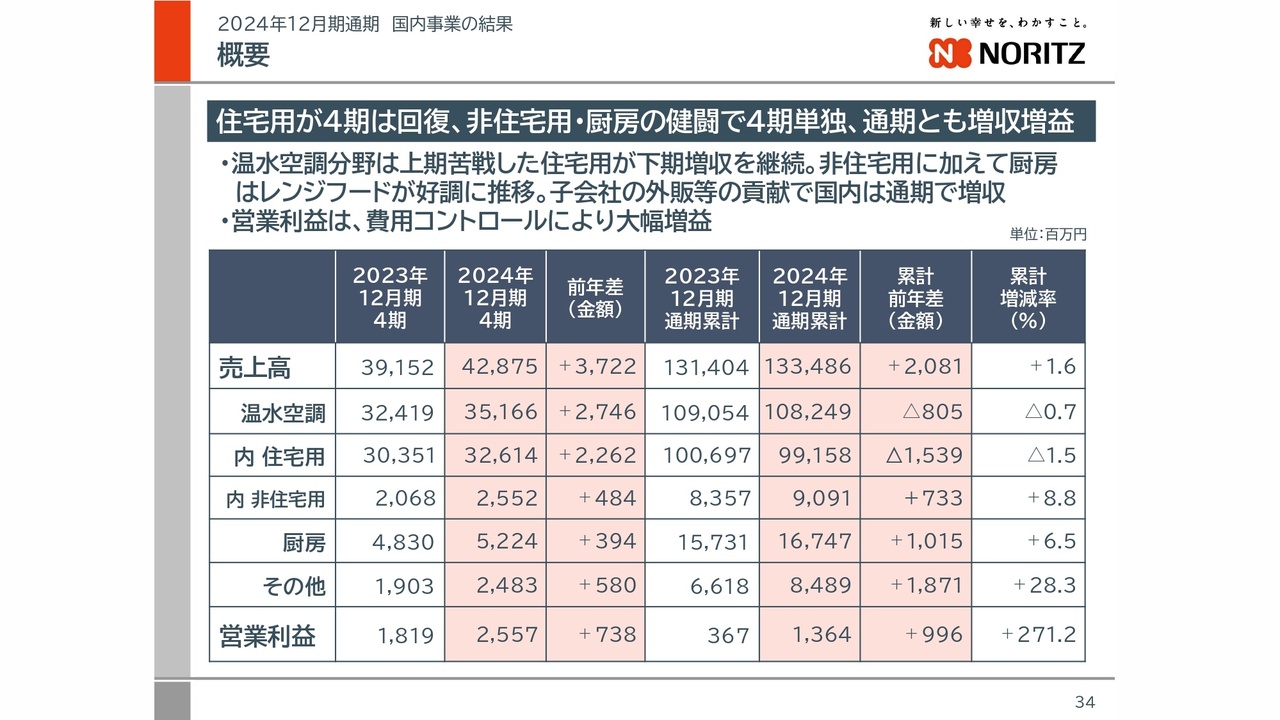 ノーリツ、国内事業は増収増益 非住宅分野・厨房分野の健闘により、住宅向け温水分野の減少分をカバー