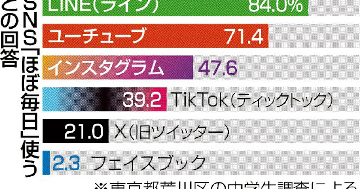 中学生のSNS使用頻度、LINE・ユーチューブが突出 都内の生徒が調査 - 日本経済新聞