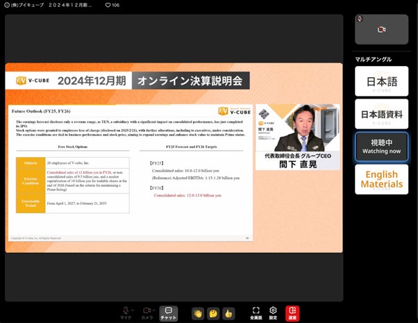ブイキューブ、2024年12月期決算説明会を日英同時通訳配信で2月21日に開催