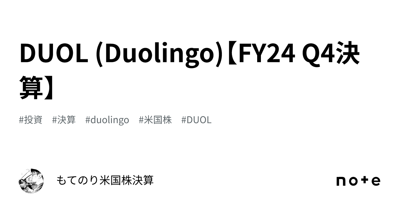 DUOL (Duolingo)【FY24 Q4決算】|もてのり✨米国株決算