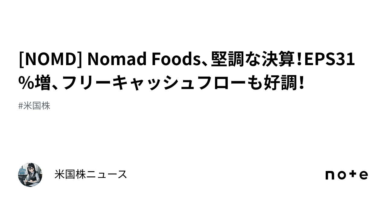 [NOMD] Nomad Foods、堅調な決算!EPS31%増、フリーキャッシュフローも好調!|米国株ニュース