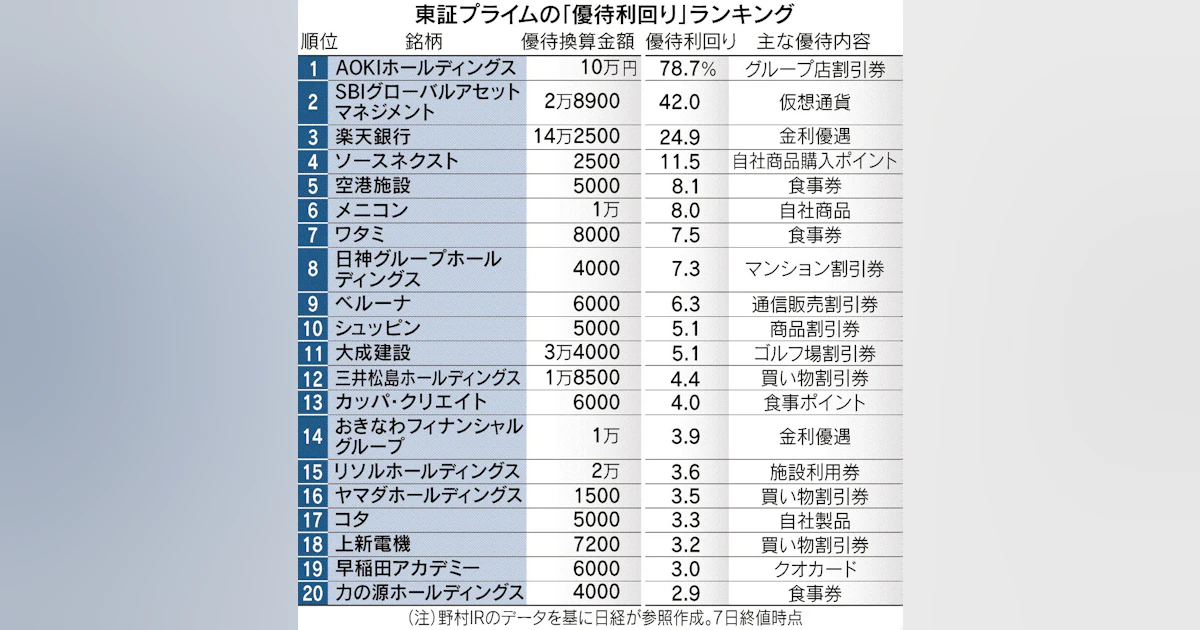 令和の株主優待(下)AOKIHD、優待に妙味 利回り79%、内容多彩で世代超え好評 - 日本経済新聞