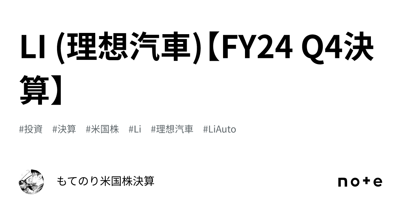 LI (理想汽車)【FY24 Q4決算】|もてのり✨米国株決算