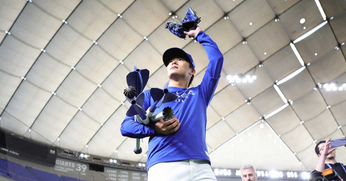 ドジャース・山本由伸 粋なファンサービスに東京D1万507人大歓声!キャッチボール、遠投で調整(スポニチ) | 毎日新聞