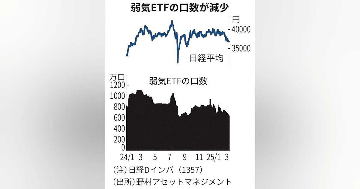 「弱気ETF」口数、7カ月ぶり低水準 個人の株先安観一服 - 日本経済新聞