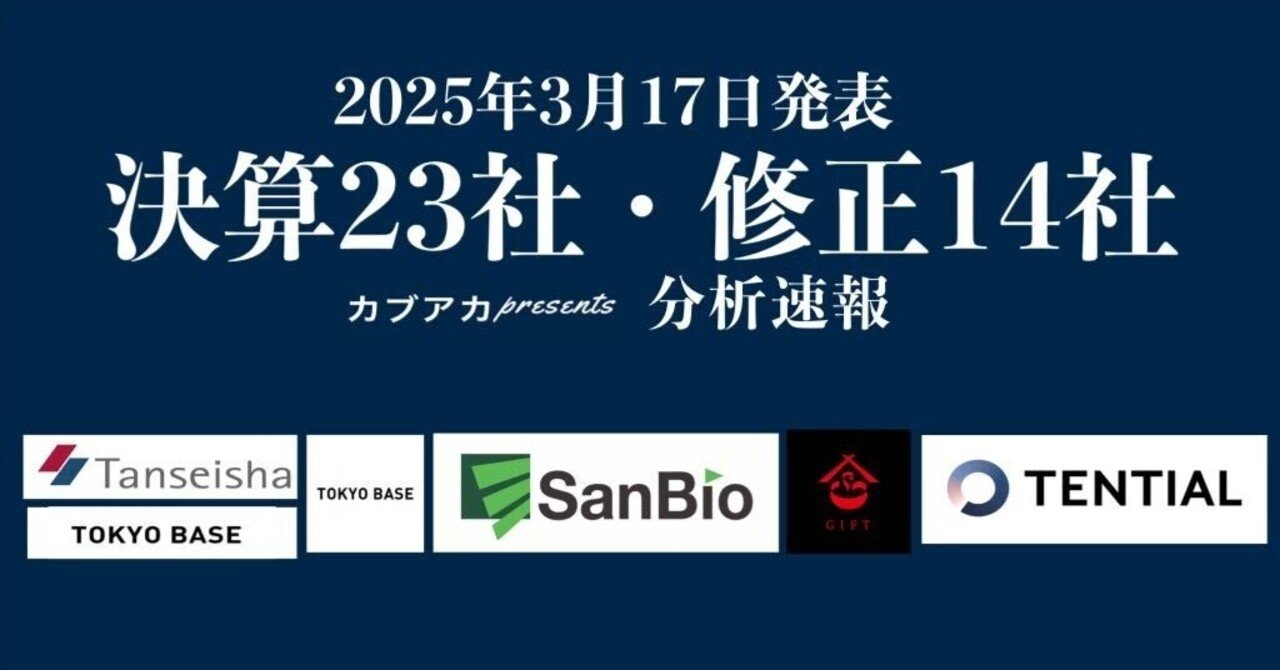【速報!】3/17発表 決算23社・修正14社★サンバイオ、ギフト、丹青社、ダブルエー、TENTIAL、アセンテック、TOKYOBASE、エニグモ、システムディ、tripla、DAIWACYCLE、Mマ|古賀真人@カブアカ